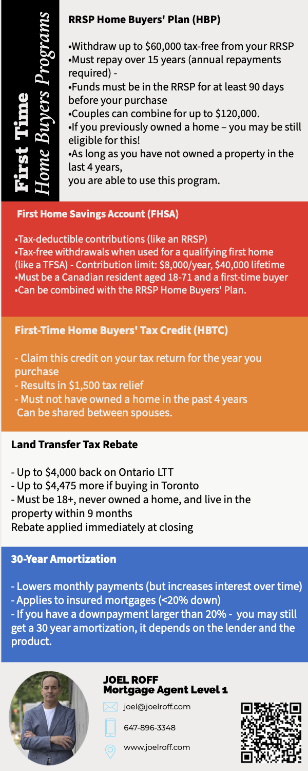 First thing we have to do is determine if you qualify as a first time homebuyer. A first-time home buyer in Ontario is generally someone who has never owned a home before—anywhere in the world. This strict definition applies to programs like the Ontario Land Transfer Tax rebate, which requires that neither you nor your spouse have ever owned a home. However, for some federal programs like the First Home Savings Account (FHSA) or the Home Buyers’ Plan (HBP), you may still qualify as a first-time buyer even if you’ve owned a home in the past, as long as you haven’t owned a property in the last four years.
